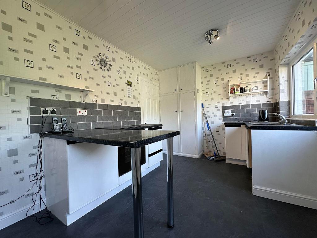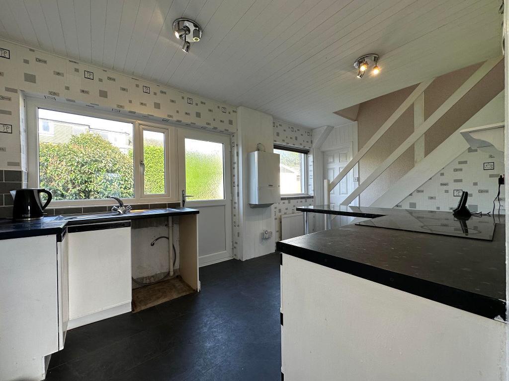 uPVC double glazed windows to the rear elevation. uPVC double glazed door with frosted effect leading to the garden. Single panel central heating radiator. Fitted kitchen with black laminated working surfaces accommodated with white cupboard doors. 'Neff' oven and grill. 'Logik' induction hob. 'Vailliant' boiler housed onto the wall. Stainless steel sink. Space for a tower fridge freezer. Plumbing for a washing machine. Staircase allowing access to the first floor. Built in storage cupboards with one housing the main switch boards and meters. Partial tiling. Telephone point. Broadband point. Power points. Two ceiling light points.