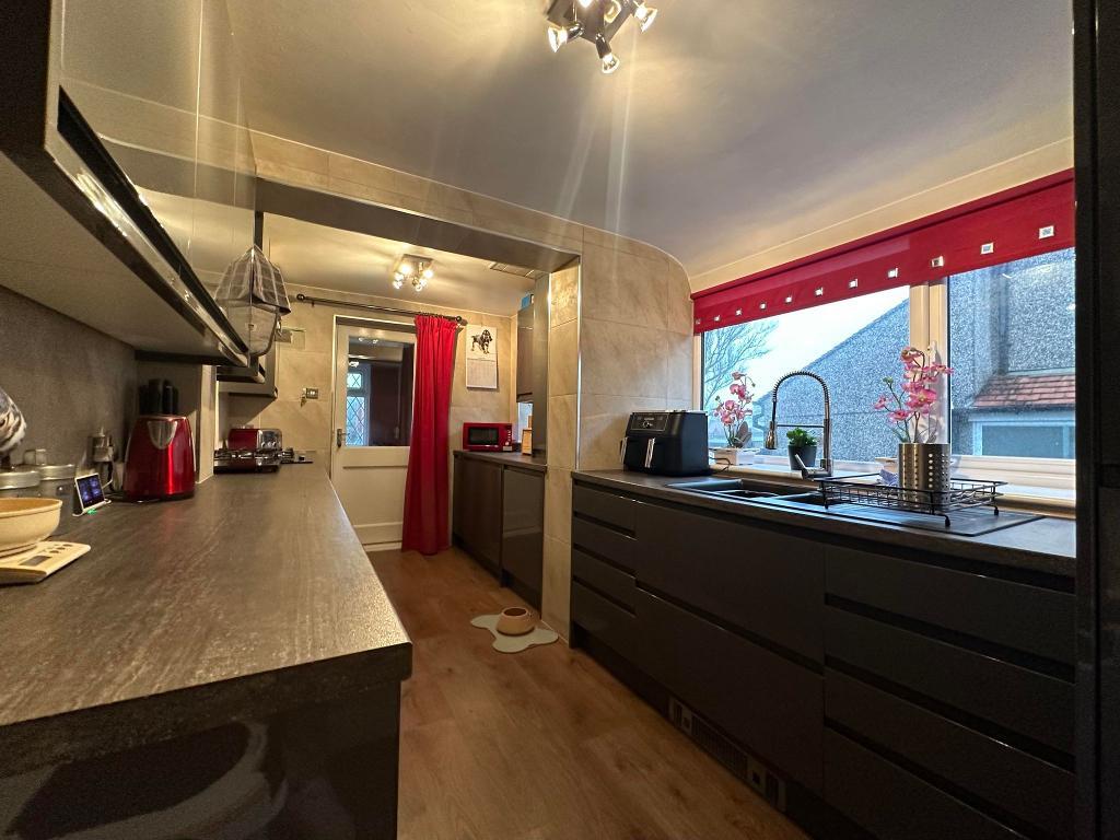This spacious three bedroom semi detached property boasts of a modern kitchen and four piece bathroom suite. The accommodation is uPVC double glazed throughout whilst briefly comprising of; entrance hallway with an original painted window, lounge with gas fire, dining room with uPVC double glazed French doors leading into the well presented extension and a modern fitted kitchen with integrated appliances. The staircase will lead to the landing, two double bedrooms both benefit from fitted storage units, good size single bedroom which is currently being used as office space and a well presented four piece bathroom suite. Externally, a tarmacadam driveway providing off-road parking and access to the rear garden. We highly recommend an internal viewing to appreciate the size and standard of the property.
