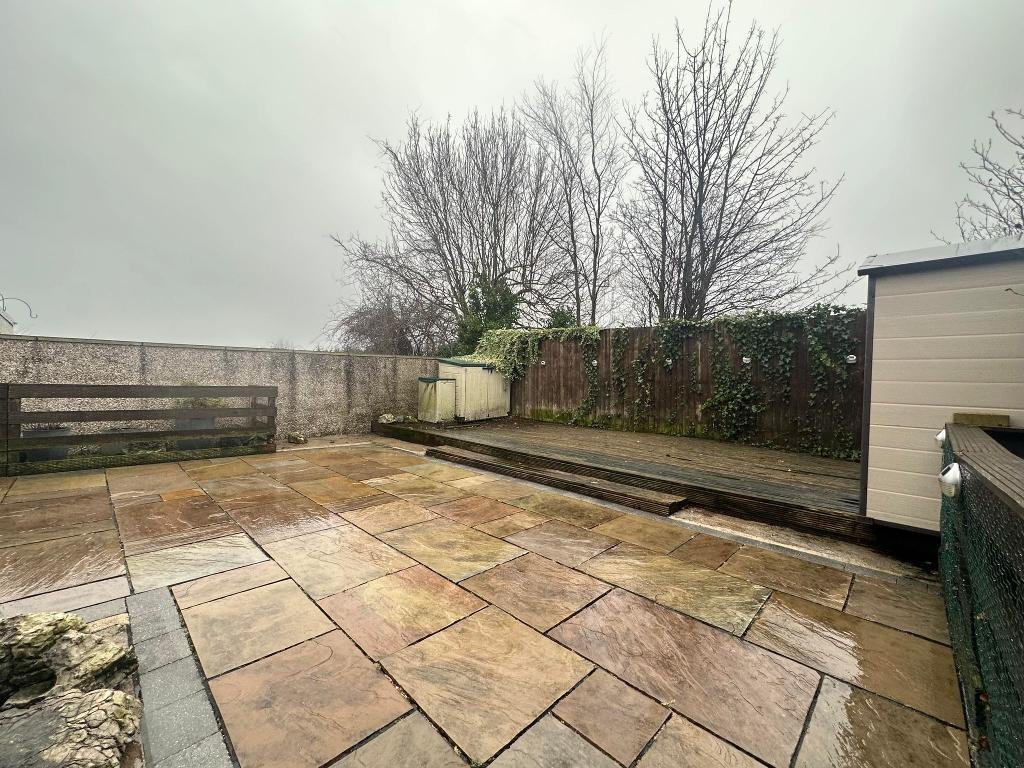 Combination stone paving and raised decking. Access to the garage via uPVC double glazed door. Side gate allowing access to the side and front elevation. Surrounding fence panels and brick built walls providing privacy. Light point.