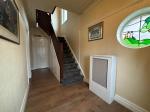Circular painted window to the side elevation. Built in storage cupboard underneath the stairs housing the main switch board and meters. Staircase leading to the first floor. Original coving. Ceiling light point.