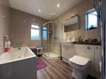 uPVC double glazed windows to the side and rear elevation with frosted effect. Towel radiator. Four piece bathroom suite in white with WC, hand wash basin set into a unit, bath and shower with waterfall effect. Access to the loft. Tiling floor to ceiling surround. Four spot lights.