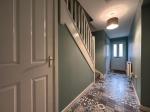 Single panel central heating radiator. Access to the downstairs WC and garage. Built in storage cupboard housed underneath the stairs. Staircase leading to the first floor landing. Power points. Ceiling light point.